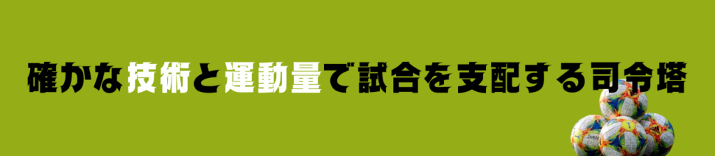 ボランチ、インサイドハーフ、トップ下でプレー可能な選手。ボール保持の時間帯にはサイドチェンジ、ワンタッチパスなどを駆使し、相手の陣形を有効に崩します。また、ボールの引き受け役として前線から落ちてくることが多くあり、攻撃の起点となります。シンプルなプレーから、芸術的センスのあるプレーまで、高クオリティでこなすことができるため、多彩な攻撃の形が期待できます。一方で、カウンター時にはシンプルな前線への配給を得意としており、カウンターを完結させる鋭いパスで何度も得点機会を演出しています。守備面においても司令塔とは思えない働き者で、最後に身体を投げ出すことも躊躇しません。勝ちに貪欲なタイプのため、がむしゃらな守備をする場面もありますが、勝ちにこだわる姿勢はチームの原動力になっています。